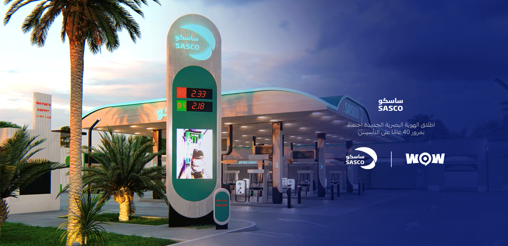 تولى فريق واو تصميم وتطوير الهوية البصرية الجديدة لساسكو، من بناء المفهوم الإبداعي واعتماد الخطوط والألوان والعناصر التصميمية، إلى تطبيق الهوية على كافة المواد التسويقية والإعلانية لضمان الاتساق والاحترافية عبر جميع المنصات.